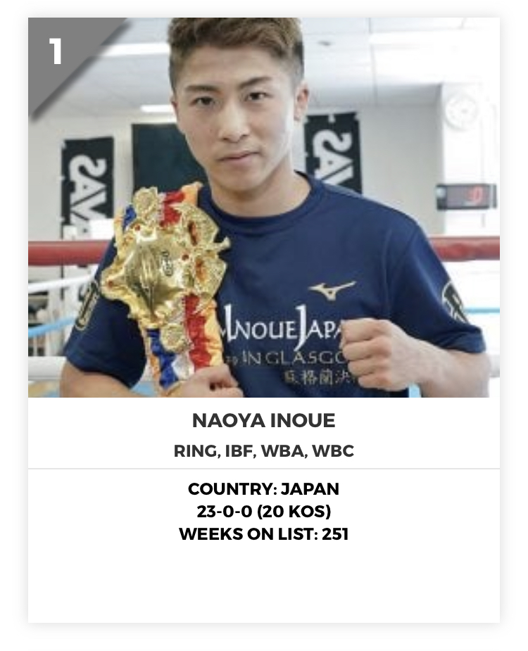 さまざまな媒体が独自のP4Pランキングを出しており、以前にも英国のどこかの媒体で井上尚弥がP4Pキングになった、というニュースは見たと思います。
